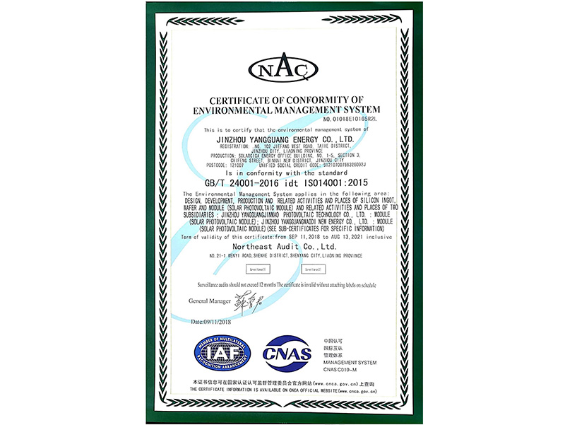 環(huán)境管理體系認(rèn)証証明書(中國(guó)語(yǔ))