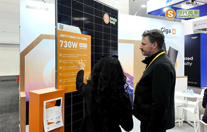 本次展會,陽光能源重點(diǎn)展示了針對澳大利亞多元化市場需求打造的三款核心組件產(chǎn)品。其中一款Giga-N 系列全能組件,憑借其 23.3% 的超高效率成為大型地面電站的降本增效利器,其卓越的機(jī)械載荷性能與抗 PID 性能確保了在嚴(yán)酷環(huán)境下的長期可靠性。針對蓬勃發(fā)展的分布式市場,陽光能源推出了全黑輕質(zhì)玻璃組件,其輕量化設(shè)計與優(yōu)雅外觀完美契合商用及戶用屋頂對美學(xué)與易安裝的訴求,現(xiàn)場吸引了大量安裝商與業(yè)主的駐足咨詢。