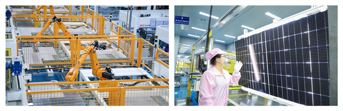 陽光能源悅陽生產(chǎn)基地坐落于鹽城建湖,占地面積約100余畝(仍在擴(kuò)建中),先進(jìn)產(chǎn)能突破90%,產(chǎn)品基本覆蓋市場主流需求,兼容M10/G12等多種尺寸規(guī)格,N型 TOPCon和HJT技術(shù)已可規(guī)?;慨a(chǎn)于組件產(chǎn)品中。