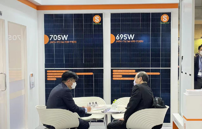 其中旗艦產(chǎn)品210N型HJT單玻半片組件功率最高可達(dá)705W,效率更是突破23.02%,可為日本市場(chǎng)帶來(lái)更加高效、高能的全新體驗(yàn),並擁有5-10倍的IEC標(biāo)準(zhǔn)檢測(cè),以及優(yōu)異的抗PID性能;210N型TOPCON單玻半片組件采用66片設(shè)計(jì),功率達(dá)到695W,作為成熟市場(chǎng)的優(yōu)質(zhì)之選,可提供12年質(zhì)量保證和30年發(fā)電效率保證。除此之外,其他4 款差異化的產(chǎn)品也獲得了眾多觀(guān)眾的青睞。